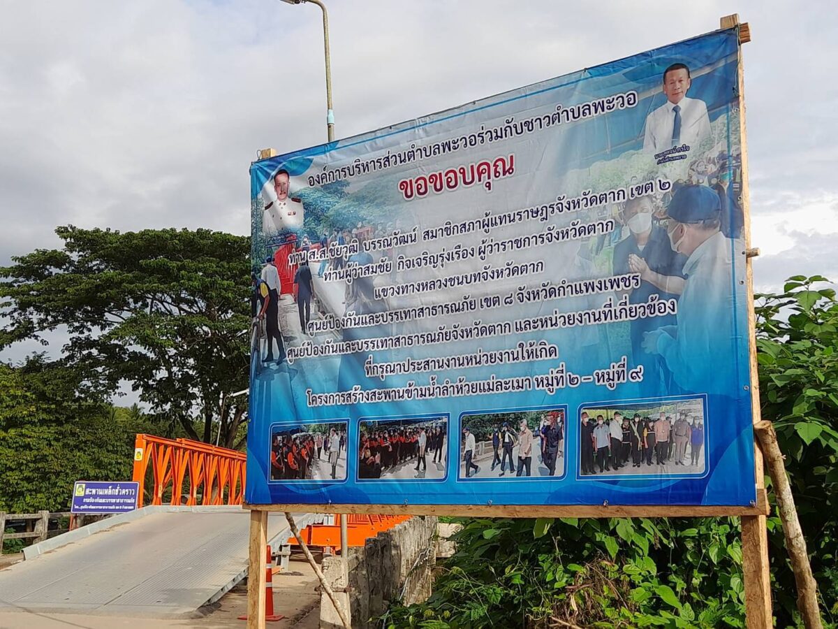 ตาก-ชาว ต.พะวอ เฮ สิงหาคม 2565 ตอกเสาเข็ม สะพานข้ามลำห้วยแม่ละเมา ขึ้นป้าย ขอบคุณ “สส.ชัยวุฒิ” – พ่อเมืองตาก และ หน่วยงานราชการที่เกี่ยวข้อง