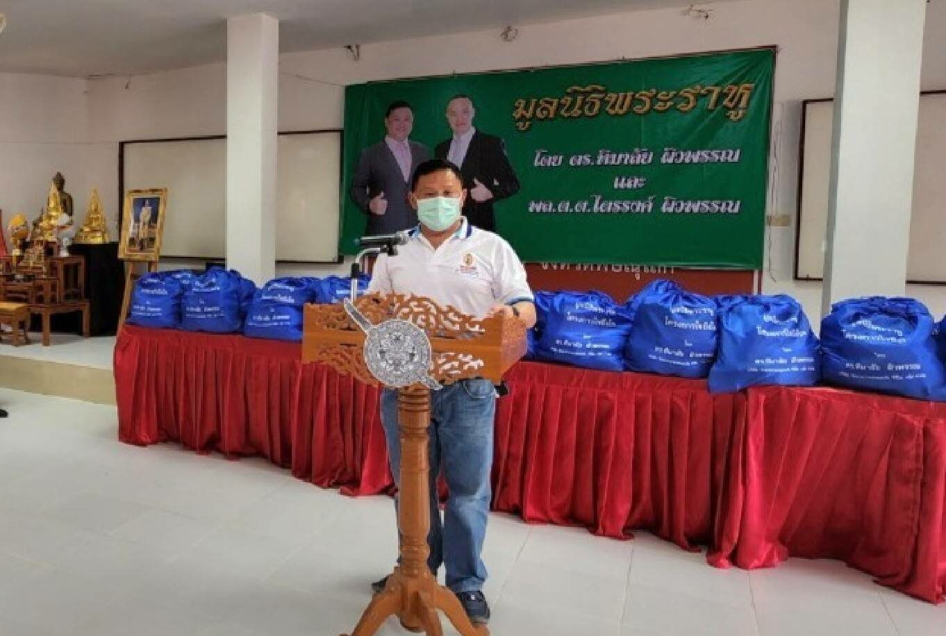 เมื่อเวลา 13.30 น. วันที่ 18 มิถุนายน ณ สถานีตำรวจภูธรนครไทย ต.เนินเพิ่ม อ.นครไทย จว.พิษณุโลก “มูลนิธิพระราหู” โดย ดร.หิมาลัย ผิวพรรณ ประธานที่ปรึกษามูลนิธิฯ พร้อมด้วย นางสาวหทัยรัตน์ ผิวพรรณ รวมทั้ง นายสัญญา นิลสุพรรณ สมาชิกสภาผู้แทนราษฎร เขต 3 นครสวรรค์ นายสุรชาติ ศรีบุศกร สมาชิกสภาผู้แทนราษฎร พิจิตร เขต 3 นายมานัส อ่อนอ้าย สมาชิกสภาผู้แทนราษฏร พิษณุโลก เขต 5 พล.ต.ปธาน ทองขุนนา ผู้ชำนาญการกองบัญชาการกองทัพไทย พ.อ.วาธิน เปริญกุล น.อ.ชัยสม ร่มโพธิ์ทอง ผู้อำนวยการกองข่าวอากาศ และคณะเข้าร่วมกิจกรรมโครงการ “ใจถึงใจ ปันน้ำใจ”มอบทุนการศึกษาให้กับบุตรข้าราชการตำรวจและมอบถุงยังชีพให้กับข้าราชการตำรวจ สภ.นครไทย และ สภ.นครชุม สังกัดตำรวจภูธร จว.พิษณุโลก