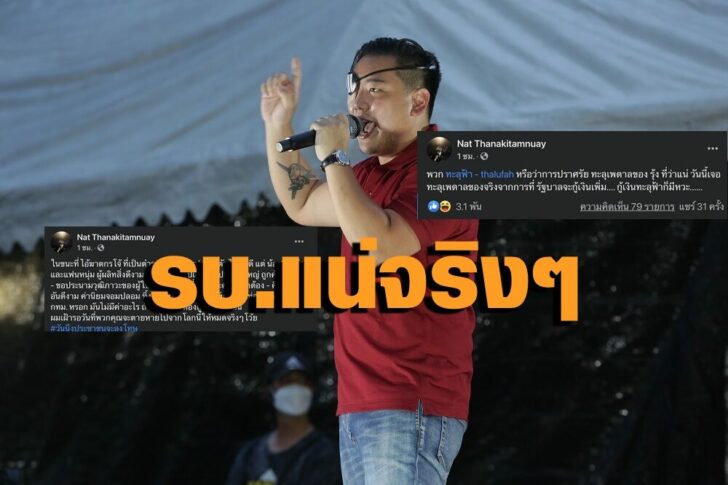 “พวกทะลุฟ้า – thalufah หรือว่าการปราศรัย ทะลุเพดานของ รุ้ง ที่ว่าแน่ วันนี้เจอ ทะลุเพดานของจริงจากการที่ รัฐบาลจะกู้เงินเพิ่ม… กู้เงินทะลุฟ้าก็มีหวะ…”