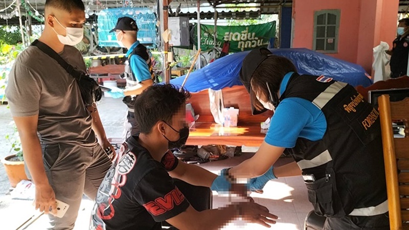 ด้าน ร.ต.อ.สุริยา ผลชู ร้อยเวรสอบสวน สภ.คลองหลวง หลังจากตรวจสอบที่เกิดเหตุแล้วจึงบันทึกภาพไว้เป็นหลักฐานและได้นำตัวนายสุรินทร์ คนก่อเหตุไปทำแผนประกอบคำรับสารภาพที่จุดเกิดเหตุ พร้อมทั้งนำตัวไปดำเนินคดีที่ สภ.คลองหลวง ส่วนผู้เสียชีวิตได้ให้เจ้าหน้าที่มูลนิธิร่วมกตัญญูนำผู้เสียชีวิตส่งนิติเวชโรงพยาบาลธรรมศาสตร์ เฉลิมพระเกียรติ เพื่อตรวจสอบอีกครั้ง – 003