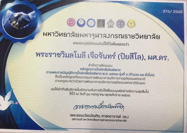 เมื่อวันที่ ๑๐ กรกฎาคม ห้องสัมมาปัญญา วิทยาลัยพุทธศาสตร์นานาชาติ มหาวิทยาลัยมหาจุฬาลงกรณราชวิทยาลัย(มจร) พระปราโมทย์ วาทโกวิโท,ดร. อาจารย์หลักสูตรสันติศึกษา มจร เลขานุการศูนย์ไกล่เกลี่ยข้อพิพาทภาคประชาชน มจร เปิดเผยว่า ในการฝึกอบรมหลักสูตรไกล่เกลี่ยข้อพิพาทตามพระราชบัญญัติการไกล่เกลี่ยข้อพิพาท พ.ศ.๒๕๖๒ รุ่น ๘ ระหว่าง ๖-๑๐ เดือนกรกฎาคม พ.ศ.๒๕๖๕ หนึ่งในผู้เข้าอบรมมีบาทหลวง ดร.รังสิพล เปลี่ยนพันธุ์ เจ้าอาวาสวัดคอทอลิก แม่พระรับสาร อำเภอตาคลี จังหวัดนครสวรรค์ ผ่านการฝึกอบรมหลักสูตรไกล่เกลี่ยข้อพิพาทรุ่น ๘