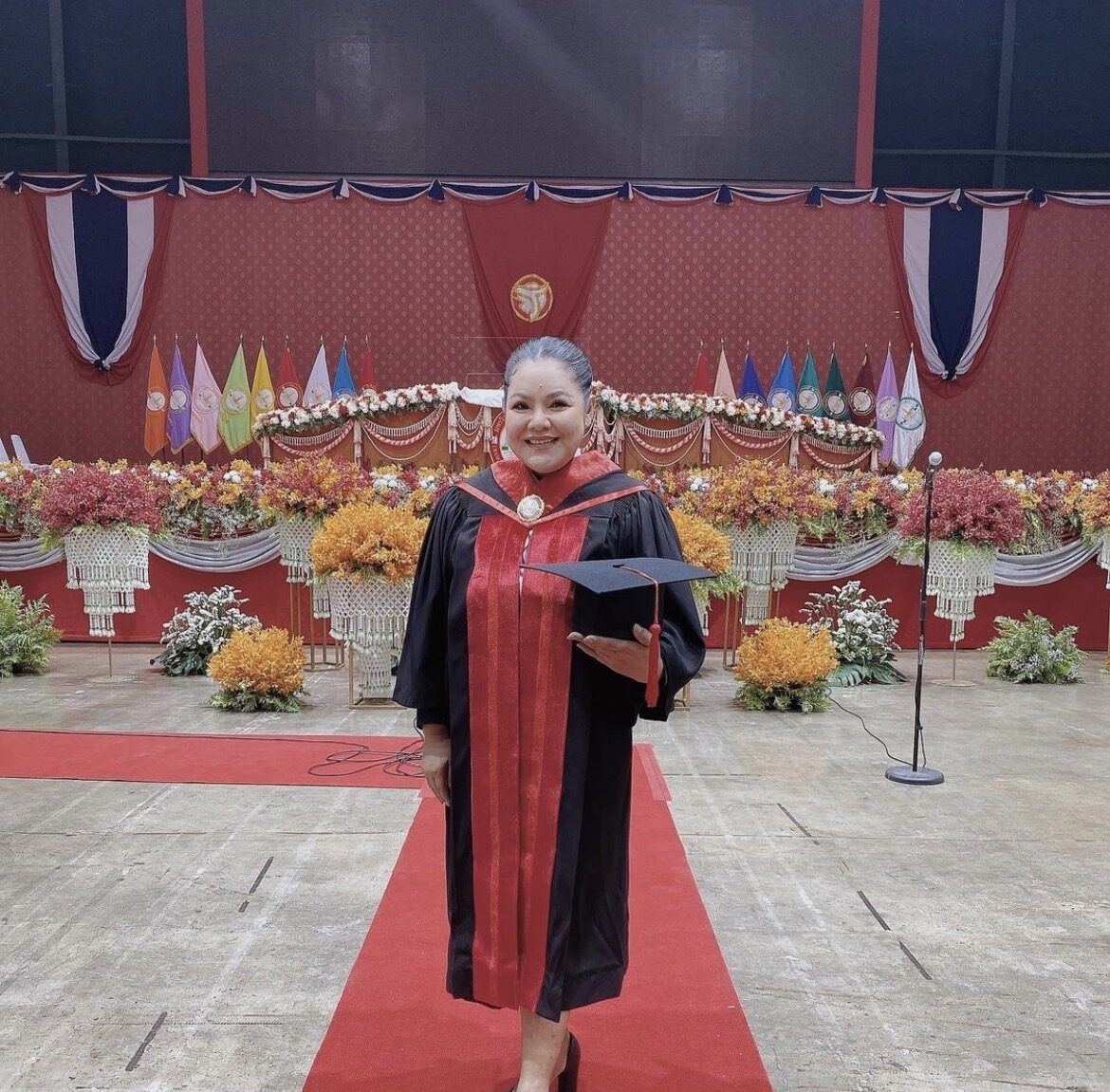 บัณฑิตป้ายแดง ฮาย อาภาพร นครสวรรค์ ในวัย 53 ปี เข้ารับพระราชทานปริญญาบัตร ในพิธีพระราชทานปริญญาบัตรแก่ผู้สำเร็จการศึกษา ประจำปีการศึกษา 2562-2564 ที่มหาวิทยาลัยกรุงเทพธนบุรี เป็นที่เรียบร้อยแล้ววันนี้ โดยฮาย ได้สำเร็จการศึกษาปริญญาตรี คณะรัฐศาสตร์ ทั้งนี้เจ้าตัวได้โพสต์รูปในชุดครุย พร้อมแคปชั่นว่า