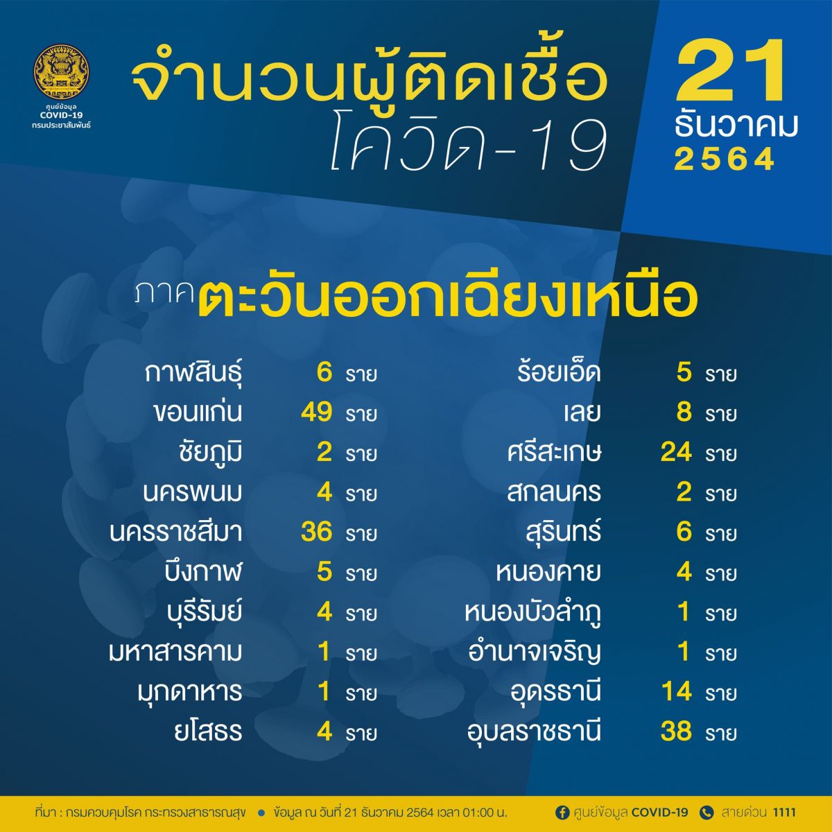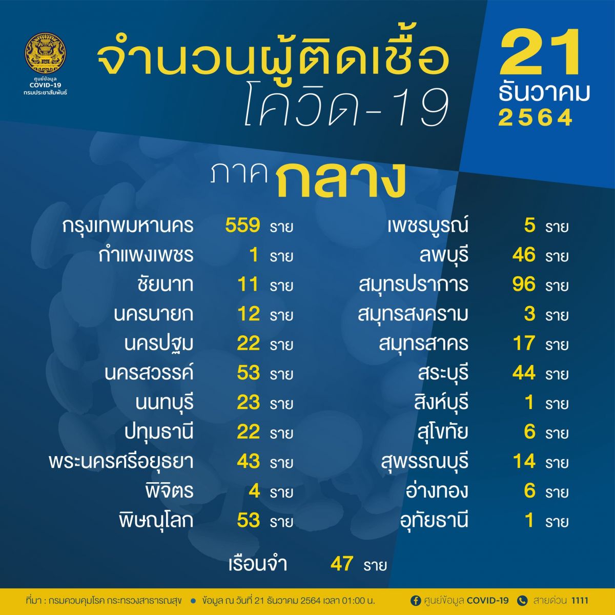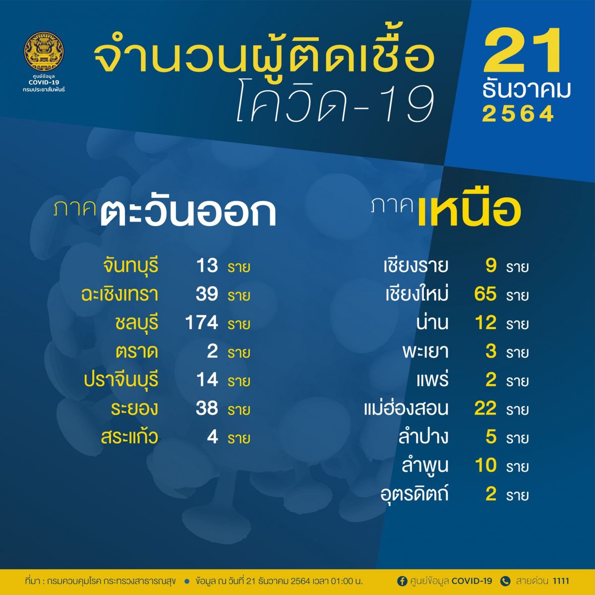เมื่อวันที่ 21 ธันวาคม 2564 ศูนย์ข้อมูล COVID-19 รายงานสถานการณ์ 10 อันดับจังหวัดที่มีจำนวนผู้ติดเชื้อโควิด-19 ในประเทศรายใหม่สูงสุด โดยมีรายละเอียดดังนี้