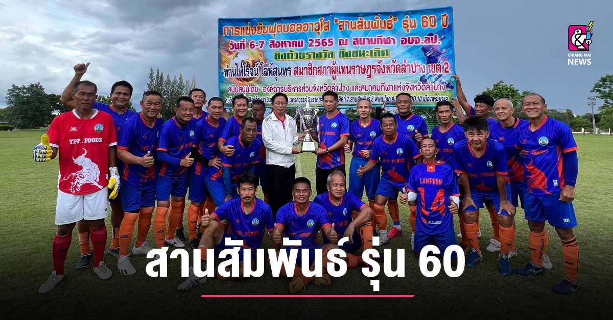 ลำปาง จัดการแข่งข้นพฟุตบอลอาวุโส “สานสัมพันธ์ รุ่น 60 ปี ระหว่างวันที่ 6-7 สุงตาคม 2565สนามองค์การบริหารส่วนจังหวัด ลำปาง มีทีมเข้าร่วมในการแข่งขัน ประกอบด้วย สาย A เวียงละกอน สิงห์ล้านนา เพชรบูรณ์ สาย B นครสวรรค์ เราหละปูน อุตรดิตถ์ สาย C สานสัมพันธ์ พิษณุโลก สาย D TPP FOOD ลำพูน